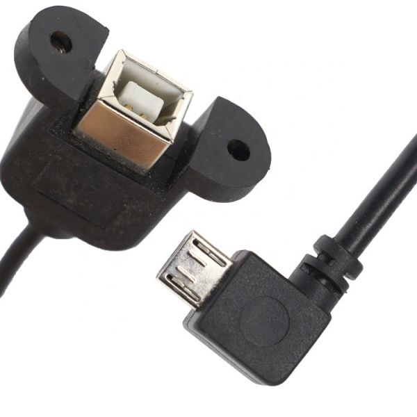 Custom Screw Locking 90 Degree Angle Micro B Male USB 2.0 Type B Female Panel Mount Extension Cable Images |
